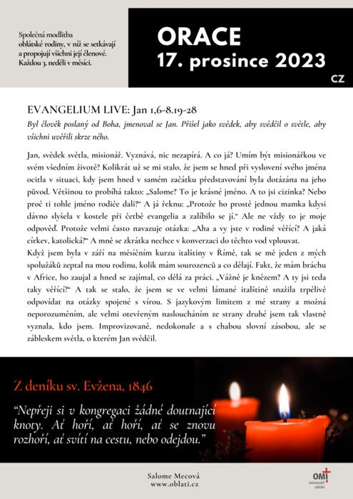 Úvod > Naše misie > Misijní orace > Misijní orace 12/2023
