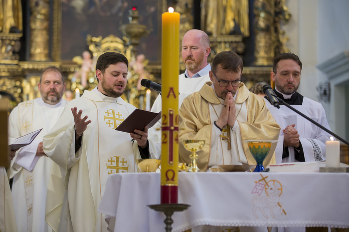 V řadě vedle sebe nebo za sebou seděli Otovi rodiče a příbuzní ze Slovenska, naší farníci a blízcí z plzeňského západu i klokotského jihu, zastoupena byla i první kroměřížská komunita. Jelikož jsme ale obláti, mají pro nás světové strany daleko širší záběr: naši generální radu zastupoval náš spolubratr Jorge, původem z Uruguaye, jižanskou Evropu Otovi formátoři a spoluscholastici z italského Vermicina a nemohli chybět naši bratři a asociovaní z celé Středoevropské provincie, takže němčina se na chvíli stala druhým liturgickým jazykem. Jedním z nejsilnějších okamžiků byl jistě mešní zpěv Lamm Gottes (Beránku Boží), který byl na území tolik poznamenaném oboustrannými zraněními víc než písní před přijímáním. Stal se znamením smíření, pokoje, znamením cesty, po které jdeme společně bez předsudků a zátěží z minulosti. Přijeli Otovi přátelé, ti dávní i nedávní. A setkání s nimi mnohdy způsobilo, že vstoupili do cesty i nám, ostatním oblátům a asociovaným, a stali se tak součástí rodiny. A v naplněném kostele a v sále, kde jsme se pak společně radovali, byli i ti, kteří si do kostela obvykle cestu nenajdou, a setkání s nimi byla o to silnější a vzácnější. A pak ta spousta dalších, kteří přijet nemohli, ale byli s námi na dálku, v modlitbě a myšlenkách. Tolik přání přes WhatsApp, tolik sms-ek, dokonce i několik tradičních přání psaných na pohlednicích.