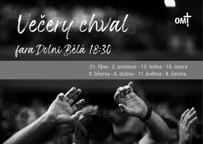S radostí vás zveme na obnovené oblátské večery chval, které se v pastoračním roce 2023/24 konají na faře v Dolní Bělé. Těšíme se na společenství v modlitbě.